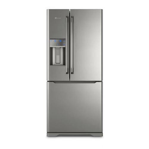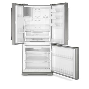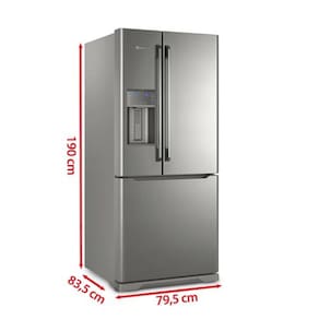 Características Tipo: French Door Quantidade de Portas: 03 Frost Free Painel Eletrônico Prateleiras: 11 prateleiras, no refrigerador 02 fixas de vidro com frame plástico, 01 retrátil com frame de plástico, na porta do refrigerador 04 fixas, 03 na porta esquerda e 01 na direita na porta do freezer 02 fixas Alarme de Portas Abertas Dispenser de Água na Porta: Externo Dispenser de Gelo na Porta: Externo Função Gelo Rápido Degelo Automático Porta Latas Porta Garrafas Freezer Invertido Controle de Temperatura para Bebidas Conexão de Ponto de Água Pés Niveladores Luz interna