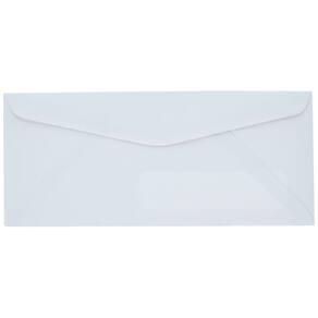 - #10 Envelopes brancos para janelas feitos de tecido branco premium de 24 libras; 4,12 x 9,5 polegadas; 100 envelopes por caixa.