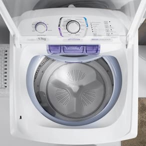 A lavadora Branca com Sistema Impeller e Dispenser Autolimpante (LAI17) possui 17 kg de capacidade que vão otimizar o tempo de lavagem das suas roupas e edredons, removendo as sujeiras e manchas mais difíceis.