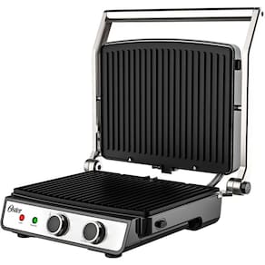 Com o Grill Elétrico Multiuso Oster, você prepara lanches e diversos tipos de receitas de um jeito fácil e saudável. Peixes, carnes, espetinhos, sanduíches, hambúrgueres. Seu encontro com os amigos e a família vai ficar ainda mais delicioso. Para todos os gostos e perfeito em qualquer momento. Com aquecimento nos dois lados, você pode grelhar nas duas chapas: aberto ou fechado. Possui 180 de abertura para facilitar ainda mais na hora de preparar uma refeição saudável. Conta também com coletor de gordura, que auxilia na hora da limpeza.
