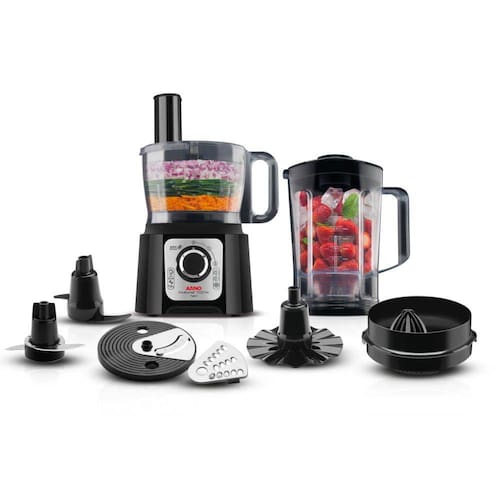 Multiprocessador Arno Multichef 700W 7 em 1 Preto 220VTenha o equipamento ideal para preparar as mais variadas receitas com facilidade e com maior economia de tempo. Conheça agora o novo Multiprocessador de Alimentos Multichef 7 em 1 da Arno e descubra um novo jeito de cozinhar. Desenvolvido para atender todas as suas expectativas, é possível picar, ralar, fatiar, liquidificar e muito mais, facilitando muito na hora de preparar os pratos mais variados.Com duas velocidades, função pulsar e 700W de potência, performance não vai faltar, conta com três lâminas processadoras, um batedor de massa pesada, um emulsificardor, espremedor e um liquidificador. Não espere mais para adquirir um produto pensado para facilitar a sua vida na cozinha, conte com o Multiprocessador Multichef da Arno e comece agora a preparar deliciosas receitas.Especificações Técnicas:- Marca: Arno- Referência: DO1655B2 - Potência: 700 W- Consumo (kW/h*/mês): 0,35- Cor: Preto- Comp. Cabo: 0,80 m- Porta-Fios: sim- Acessórios: 3 lâminas processadoras ( picar, ralar, fatiar) + 1 batedor de massa pesada + 1 emulsificardor + 1 espremedor + 1 liquidificador- Capacidade: Jarra do processador 1,3 L ( útil); 1,5 L ( total); Liquidificador 1,5 L ( útil) ; 3,1 L ( total)- Quantidade de Velocidades: 2 + pulse- Tipo de Material: corpo plástico e copo em san cristal- Conteúdo da Embalagem: 1 processador, 1 liquidificador, 3 lâminas processadoras,1 batedor de massa pesada, 1 emulsificador,1 espremedor, 1 manual de instruções, 1 certificado de garantia- Dimensões do produto (L x A x P): 25 x 38 x 21.3 cm- Dimensões da embalagem (LxAxP): 40.7 x 33.1 x 20.1 cm- Peso Líq.: 2,36 kg- Peso Bruto: 2,77 kg- Garantia: 1 ano