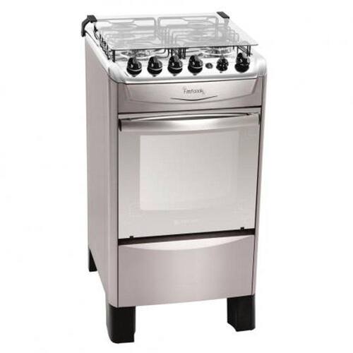 - Marca: Atlas - Modelo: Fastcook - Cor: Inox - Voltagem: Bivolt - Quantidade de queimadores: 4 queimadores - Acendimento automático: Sim - Trempe dupla e plana: Sim - Acabamento em inox escovado: Sim - Vidro duplo e visor amplo na porta do forno: Sim - 2 grades fixas: Sim - Pés altos: Sim - Manípulos removíveis: Sim - Puxador do forno em alumínio escovado: Sim - Luz no forno*: Sim - Capacidade do forno: 50L, - Potência dos queimadores: 2Q Ramal 1,7kW | 2Q Família 2,0kW. - Dimensões do produto (LxAxP): 48 x 93,1 x 59,5 cm - Peso Líquido (Kg): 19,6 Kg - Tipo de Gás: GLP - Garantia: 12 meses
