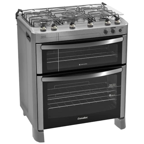 Fogão Piso Diamante 5 Bocas Inox Duplo Forno Esmaltec 127V 0104001281Esmaltec traz o fogão feito especialmente para sua casa. Um produto de qualidade que torna seu dia a dia prático e as refeições muito mais gostosas. O modelo Diamante 5 Bocas tem acendimento automático, o que torna o uso do eletrodoméstico mais seguro. Além disso possui trempes individuais que podem ser facilmente removidas para a limpeza e mesa selada, que impede a sujeira de adentrar a mesa.O forno possui função autolimpante, assim a limpeza do forno fica muito mais fácil. Também possui forno duplo, para você preparar duas receitas ao mesmo tempo - poupando seu tempo e facilitando sua rotina. O aviso sonoro impede que os alimentos passem do ponto, dessa forma, não haverá motivos para preocupações quanto à comida. Conta, ainda, com luz de alerta ao atingir a temperatura desejada.Características:- Duplo forno: Permite preparar duas receitas ao mesmo tempo.- Queimador Dual Wok: Três anéis de chamas independentes. Grande intensidade de calor e uniformidade no cozimento.- Timer sonoro: Avisa com um alarme quando sua receita estiver pronta.- Sensor: Quando o forno atinge a temperatura desejada, a luz vermelha aparece.- Forno elétrico: Mais uma opção para cozinhar. De forma rápida e com maior precisão da temperatura.- Forno autolimpante: Faz autolimpeza enquanto está em uso.- Mesa selada: Impede a entrada de sujeira na mesa.- Alça lateral: Facilita o transporte e deslocamento para a limpeza.- Dobradiça italiana.Especificações Técnicas:- Marca: Esmaltec- Modelo: Diamante 5Q- Potência: 13,5 kW- Potência Elétrica: 1552 W- Queimadores: 5- Potência queimador pequeno: 1,7 kW- Potência queimador médio: 2,0 kW- Potência queimador Tripla chama Dual: 3,5 kW- Potência queimador forno: 2,6 kW- Forno: Duplo- Volume do Forno a Gás: 95 L - Volume do Forno Elétrico: 44,5 L- Potência do Forno elétrico: 1500W - Potência do Grill elétrico: 850W- Tipo de Gás: GLP- Vazão Total GLP: 10,4 L/min- Dimensões do Produto (AxLxP): 92 x 76,7 x 59,8 cm- Peso: 40Kg- Pressão do Gás: 2,8 kPa- Classif. Mesa/Forno: A/A- Garantia: 12 meses