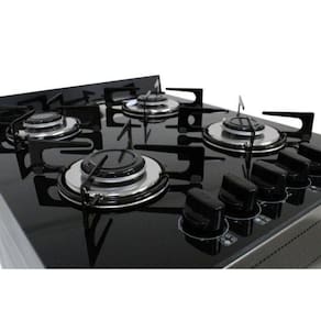 O design do fogão é moderno e atraente, com mesa em vidro temperado e manípulos sobreposto à mesa, é ideal para todos os tipos de cozinhas. Com puxador em aço pintado e trempes esmaltadas, proporcionam um efeito clean no ambiente.