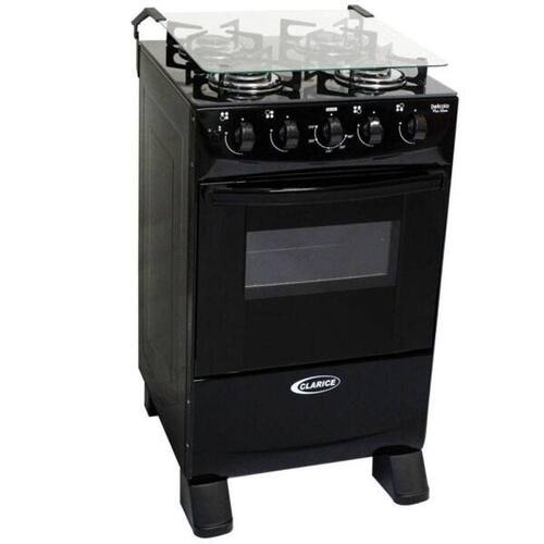 Fogão Clarice Delicato Plus Glass Piso 4 Bocas Preto com Respaldo Bivolt