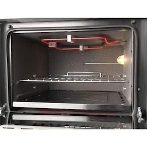 - Lâmpada interna que facilita a visualização dos assados, com proteção de vidro