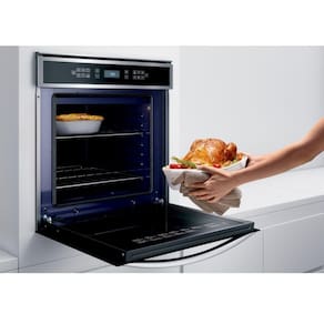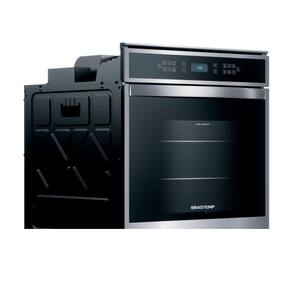 O Forno contém 2 prateleiras que podem ser ajustadas em até 7 níveis, sendo assim, podendo ser assados dois pratos diferentes ao mesmo tempo.