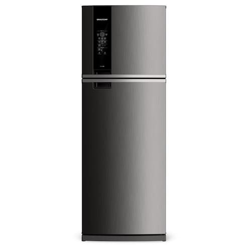 - Tensão: 220V - Capacidade Total: 400 Litros - Capacidade do Refrigerador: 311 Litros - Capacidade do freezer: 89 Litros - Potência: Não informado pelo Fabricante - Classificação Energética: Classificação A - Consumo: 57 KWh/mês - Cor: Evox - Prateleiras: 3 Prateleiras - Material Prateleiras: Vidro - Gavetas: Sim. 2 Gavetas - Recipiente para guardar gelo: Sim. 2 Formas - Porta ovos: Sim. 12 Ovos - Pés niveladores: Sim - Porta-latas: Sim - Porta reversível: Não - Iluminação interna: Sim. LED - Puxadores: Embutidos - Peso: 66 Kg - Dimensões (L x A x P): 62,1 X 185 cm x 78,5 cm - Modelo: BRM54HKBNA - Marca: Brastemp