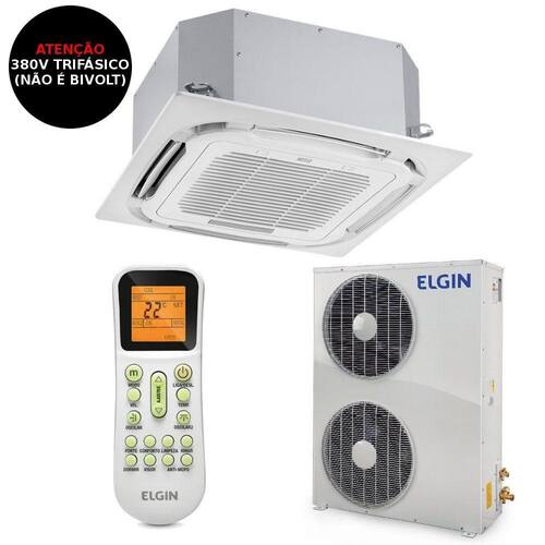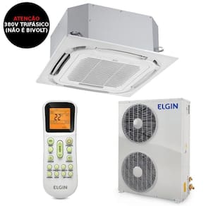 Ar Condicionado Split Cassete Plus Elgin 60000 BTUs Frio 380V Trifásico 45OUFE60B4NAO Cassete Plus chegou para proporcionar conforto térmico e alta capacidade, é uma opção sustentável que harmoniza perfeitamente em qualquer tipo de espaço, o design sofisticado do aparelho proporciona um visual clean e discreto, tendo em vista que apenas a grelha fica visível no ambiente. Além disso, a unidade interna conta com display para indicar e facilitar a visualização da temperatura. Com uma excelente distribuição de ar, o Ar Condicionado Cassete Plus conta com insuflamento pelos quatro cantos e quatro lados, é uma solução em climatização que atende bem a ambientes comerciais e empresariais. Pensando sempre no meio ambiente, o aparelho conta com Gás Ecológico R-410A que não prejudica a camada de ozônio. Possibilidade de colocar um duto para renovação do ar e outro para condicionar uma sala adjacente. Viu só como a Elgin pensa em tudo? Ambiente climatizado, conforto térmico e alta capacidade, o Ar Condicionado Cassete proporciona tudo de melhor para você! Especificações Técnicas:- Marca: Elgin - Código Comercial (unidade interna/externa/painel): KPFI60B2NA/OUFE60B4CB/KPZP00B2DA- Código Elgin (unidade interna/externa): 45KPFI60B2NA / 45OUFE60B2CB- Cor predominante: Branca- Capacidade: 60000 BTUs - Alimentação elétrica: 380V Trifásico- Frequência: 60 Hz- Ciclo: Frio- Potência: 5429 W- Corrente Máxima (A): 10,7 A- Classificação no INMETRO (W/W): A- Vazão da unidade interna (Refr.): 1800 m3/h- Posição da unidade interna: Teto- Controle remoto: Sim- Air swing (direcionador de ar automático): Sim- Velocidade de ventilação: turbo, alta, média e baixa- Timer: Sim- Auto restart: Sim- Auto limpeza no evaporador: Não- Display de temperatura (unid. Interna): Sim- Tipo do compressor: Rotativo- Refrigerante: R-410A- Dimensões da unidade interna (A x L x P): 29 x 83,5 x 83,5 cm- Dimensões da unidade externa (A x L x P): 116,2 x 86,9 x 32,5 cm- Dimensões do painel (A x L x P): 5,5 x 95 x 95 cm- Peso líquido/bruto da unidade interna: 28 / 31 kg- Peso líquido/bruto da unidade externa: 90,5 / 99,5 kg- Peso líquido/bruto do painel: 5,5 / 7 kg- Conteúdo da Embalagem: Unidade interna, Unidades externa, Painel, controle remoto, baterias e Manual de instruções- Garantia: 3 anos
