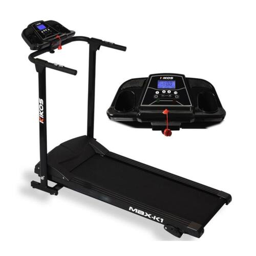 Especificações Técnicas - Marca: Kikos - Modelo: Max-K1x - Cor: Preto - Voltagem: Bivolt - Tamanho: Único - Classificação: Residencial - Velocidade (Km/H): 1 à 13 km/h Display: Display em LCD azul com funções: tempo, calorias, velocidade, distância - e chave de segurança - Monitoramento Cardíaco: Hand Grip - Motor: 2.2 HPM - Pintura: Pintura eletrostática a pó - Quantidade De Programas: 12 - Dobrável: Sim - Sistema de Inclinação: Manual com 3 níveis de inclinação - Estrutura: Aço Carbono - Peso do Produto: 36 Kg - Peso Máximo do Usuário: 100 Kg - Dimensões Aproximadas (LxAxP): 66,5 x 111 x 148,5 cm - Superfície de Corrida/Manta: 110 x 40 cm - Acessórios: 2 porta objeto - Tipo de Treino: Cardio - Gênero: Unissex - Tipo de Produto: Esteira Ergométrica - Garantia: 12 meses