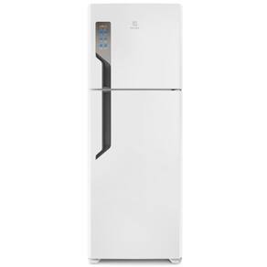 Refrigerador Electrolux Top Freezer 474L Branco 127V TF56A geladeira Electrolux Frost Free TF56 foi desenvolvida para ser funcional e moderna, sendo uma excelente opção para armazenar os seus alimentos favoritos com espaço de sobra. Possui um freezer com capacidade de 128 litros, ideal para armazenar sobremesas, carnes e outros alimentos que necessitam de constante refrigeração. Seu espaço interno foi projetado para proporcionar a maior capacidade útil, com prateleiras reversíveis no freezer e no refrigerador, adaptar o espaço interno do seu refrigerador e acomodar diversos alimentos será ainda mais fácil. Suas frutas e verduras possuem um espaço especial na geladeira, através do amplo gavetão que preserva por mais tempo que gavetas comuns. O design moderno do Refrigerador TF56 acompanha painel digital, escolha a função ideal ao toque de um botão. As funções compras, férias e festa escolhem automaticamente a temperatura ideal para cada situação. Melhor visualização do interior da geladeira e baixo consumo de energia elétrica com a iluminação em LED.Conta também com o Icemax, compartimento para produção de gelo com exclusivo sistema sem respingos, sem mistura de odores e fácil de remover. Não espere mais para adquirir um item chave na hora de planejar e decorar, conte com a Electrolux e dê um upgrade na sua cozinha.Especificações Técnicas:- Marca: Electrolux - Modelo: TF56 - 127V - Acabamento da Porta: Branco - Alarme de Porta: Sim - Capacidade Bruta Congelador (l): 151 - Capacidade Bruta Refrigerador (L): 353 - Capacidade de congelamento (Kg/24h): 8 - Capacidade Líq. Congelador (l): 128 - Capacidade Liq. Refrigerador (L): 346 - Capacidade líquida do refrigerador (L): 346 - Capacidade Total Bruta (L): 504 - Capacidade Total de Armazenamento (L): 474 - Cesta porta Ovos: Sim - Classificação Energética: A - Compartimento Congelamento Rápido: Sim - Compartimento Extra Frio: Sim - Consumo: 54 - Conteúdo da Embalagem: Embalagem em EPS, com saco plastico em PEBD. - Porta: Branco - Branco - Degelo Automático: Sim - Frequência (Hz): 60 - Iluminação Interna: Sim - Maquina de Gelo Automática: Sim - Material das Prateleiras: Vidro temperado - Painel Digital: Sim - Prateleiras de Vidro Temperado: Sim - Prateleiras na Porta: Sim - Prateleiras Reguláveis: Sim - Prateleiras Removíveis: Sim - Puxadores: Sim - Quantidade de Portas: 2 - Recipiente para Guardar Gelo: Sim - Rodízios: Sim - Selo Procel: Sim - Separador de Garrafas: Sim - Sistema de Refrigeração: Frost Free - Tecnologia Inverter: FROST FRE - Temperatura do congelador (oC): -18 - Tempo máximo de conservação s/energia (h): 8 - Tipo: 2 Portas - Total de Prateleiras: "Prateleiras internas: 3 Prateleiras na contra porta: 5." - Dimensões do Produto (AxLxP): 189 x 70 x 73.2 cm - Peso líquido (kg): 73 - Garantia: 12 meses