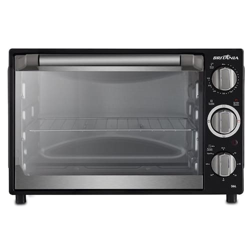 Forno Elétrico Britânia Preto 36L 220V BFE36PO Forno Elétrico Britânia 36L foi feito para quem gosta de cozinhar receitas variadas, ele oferece 2 resistências, uma superior e outra inferior, com controle individual de temperatura para distribuir melhor o calor. Para seu conforto, ele conta com função Timer de até 60 minutos, com desligamento automático e sinal sonoro. Sobrando mais tempo para você fazer suas coisas sem se preocupar se a comida vai queimar. Suas temperatura é ajustável (90º a 230º) e ainda possui a função Dourar, para deixar seus alimentos dourados , crocantes e deliciosos. Acompanha grelha deslizante com regulagem de altura e luz indicadora de funcionamento!Especificações Técnicas:- Marca: Britânia - Modelo: BFE36P- Tensão: 220V- Capacidade: 36L- Preto- Potência: 1500W- Botão seletor de temperatura: Sim, 90ºC a 230ºC- Botão seletor de funções: Aquecimento superior, inferior, superior e inferior- Botão Timer: Sim, 60 minutos com sinal sonoro- Botão Timer possui opção para manter ligado: Sim- Luz indicadora de funcionamento: Sim- Acompanha grelha deslizante: Sim- Garantia de 1 ano- Composição: Metal- Dimensões do Produto (LxAxP): 45 x 29,8 x 42,5 cm- Peso do Produto: 5 kg- Garantia: 12 Meses