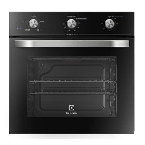 Forno Elétrico de Embutir Electrolux 59 Litros Vidro Preto 127V OE60MOs fornos de embutir tomaram conta das cozinhas por serem compactos por fora e espaçosos por dentro, além de possuírem um design que deixa qualquer um boquiaberto. Conheça agora o Forno Elétrico de Embutir da Electrolux, com 59 litros de capacidade é possível preparar receitas perfeitas e saborosas para a sua família com a praticidade que só a Electrolux proporciona a você.Prepare receitas deliciosas sem a preocupação dos pratos esfriarem enquanto você recebe os seus amigos, deixe-os quentinhos e saborosos com a função Manter Aquecido. Acabou esquecendo do forno enquanto conversava com a sua família? Não se preocupe, o Timer com Desligamento desliga o forno assim que o tempo definido no painel chega ao fim. Você pode preparar até duas receitas ao mesmo tempo com o auxílio de 2 prateleiras e 4 níveis de altura completamente ajustáveis, economizando ainda mais o seu tempo para poder aproveitar o tempo com quem você ama.Na hora de limpar, o esmalte Simple+Clean ajuda a remover manchas e partículas de gorduras que ficam acumuladas no interior do forno, deixando-o sempre limpo e conversado. Aproveite e tenha o Forno Elétrico de Embutir da Electrolux na sua cozinha!Especificações Técnicas: - Marca: Electrolux- Modelo: OE60M- Abertura: Superior (drop down)- Acabamento Frontal: Vidro preto- Acabamento Lateral: Aço- Tensão (V): 127V- Cor: Preta- Capacidade do Forno: 59 litros- Controle Independente de Calor Superior e Inferior: Não- Controles: Manuais (manípulos mecânicos)- Embutir: Sim- Forno Autolimpante: Não- Frequência (Hz): 60- Funções: 3 funções: Bolos e Massas, Grill e Carnes- Funções Pré-programadas: Sim- Grill: Sim- Isolamento Térmico Total: Não- Lâmpada Interna: Sim- Dimensões do produto (LxAxP): 59,5 x 59,5 x 50 cm- Dimensões do produto embalado (LxAxP): 65 x 66 x 57 cm- Luz Piloto: Sim- Dimensões do nicho de embutir (LxAxP): 56 x 58,3 x 55 cm- Painel: Sim- Peso bruto (Kg): 32,8- Peso líquido (Kg) 29,5- Porta de Vidro Triplo: Não- Porta Removível: Sim- Potência (W): 2000- Prateleira Telescópica: Não- Prateleiras Deslizantes: Não- Puxadores: Sim- Quantidade de Prateleiras: 2 prateleiras em 4 níveis de altura- Relógio: Não- Resistências Blindadas: Não- Revestimento Interno Antiaderente: Sim- Seletor de Funções: Sim- Temperatura do forno (°C): 50/250- Timer: sim- Tipo: Forno de Embutir elétrico- Título: Forno de embutir com 59 litros de capacidade (OE60M)- Trava de Segurança: Não- Garantia: 12 meses
