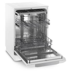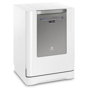 Lava-louça Electrolux Branco 14 Serviços 127V LV14BA Lava-louças 14 Serviços Electrolux veio para facilitar seu dia a dia. Ela é composta por um painel com display digital que vai indicando o tempo restante da lavagem, assim, você pode se programar sem preocupações. Ela conta com um sensor inteligente que consegue identificar o nível de sujeira nas louças e programa automaticamente o ciclo de lavagem mais adequado, assim favorecendo a comodidade na operação. Para aqueles momentos em que você precisa de tempo e agilidade, ela possui um programa de lavagem rápida para louças pouco sujas e o programa Delicado para louças mais delicadas. Sem contar que ainda conta com a função Higienizar Louças, que utiliza água em temperatura de até 70° para higienização das louças.Possui uma tecla de Início/Pausa facilitando o início/pausa do ciclo quando necessário. E como nem sempre se tem uma quantidade grande de louças, ele possui o sistema Acquajet, que é utilizado em casos onde tem pouca louça e depois pode ir adicionando mais. Neste caso ele apenas enxágua o excesso de sujeira e não deixa mau cheiro. A Lava-louças Electrolux 14 serviços lava louças de até 14 pessoas, sempre se adequando às suas necessidades. No painel da Lava-louças será indicado quando o líquido secante deve ser reabastecido. A Lava-louças Electrolux possui cesto intermediário ajustável, possibilitando mais organização dos itens. E para manter a segurança da sua família, conta com Trava Painel.É perfeita para você, sua casa e sua família. Especificações Técnicas:- Marca: Electrolux- Modelo: LV14B- Tensão: 127V - Dimensões do Produto (LxAxP): 59,8 x 83 x 60,5 cm- Dimensões do Produto Embalado (LxAxP): 64,5 x 88,4 x 64,5 cm- Peso (kg): 46,5- Peso Embalado (kg): 52,1- Acabamento Frontal: Porta Aço carbono pintado | Rodapé: Plástico- Acabamento Lateral: Aço carbono pintado- Cesto para Talheres: Prateleira superior- Comprimento máximo da mangueira de entrada (mm): 1500- Conteúdo da Embalagem: 1 Lava-louça 1 mangueira de entrada de água 1 Guia rápido 1 Manual 1 Manual de serviços- Dispenser para Sabão: Sim- Frequência (Hz): 60- Função Adia Lavagem: Sim- Função Pré-Lavagem: Sim- Lava Panelas: Sim- Painel: Blue Touch- Potência térmica (W): 1250- Programas: 6- Quantidade de Pulverizadores: 3- Sensor de Sujeira: Sim- Tipo: Piso- Acabamento Interno: Inox- Capacidade: 14 serviços- Filtro: Sim- Função ECO: Não- Pés Niveladores: Sim- Tampa com Visor Transparente: Não- Temperatura da Água (°C): 70 (Função Higienizar)- Trava Painel: Sim- Garantia: 12 Meses