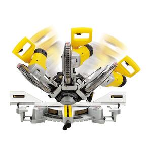 O projeto robusto da base e da cerca assegura o corte do tempo longo e preciso. Corte com bloqueio repetitivo. Cabeça chanfrada para cortes de chanfro duplo para grande versatilidade. Para aumentar a área de corte, a serra conta com braço telescópico.