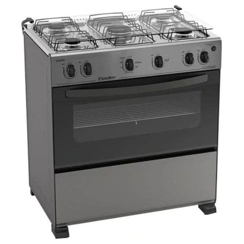 Características: Marca: Esmaltec Modelo: Caribe Acendimento automático total Forno autolimpante Tampa de vidro temperado Puxador de aço Botões removíveis Prateleiras no forno Gás: GLP Potência: 13 Kw Potência Elétrica: 2 Watts