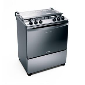 Fogão Brastemp de Piso 5 Bocas Inox Turbo Chama Bivolt BFS5ECRUNAPreparar diversos alimentos para o almoço de família requer bastante espaço na cozinha e principalmente no fogão, por isso o Fogão Brastemp conta com 5 bocas, Turbo chama, trempes robustas e duplas e um design moderno com botões removíveis e aro protetor que protege contra a entrada de sujeira e facilita a limpeza.Turbo ChamaGarante maior potência e velocidade nos preparos das suas receitas.Botões Removíveis com Exclusivo Aro ProtetorO exclusivo Aro Protetor que protege o fogão contra a entrada de sujeira e facilita a limpeza.Tecnologia CleartecInspirado nos fornos de embutir, os fogões possuem o revestimento esmaltado e liso, mais fácil de limpar se comparado ao forno comum de superfície áspera.Trempes Robustas e DuplasTrempes Duplas mais robustas, estáveis e segurasForno ErgonômicoO Forno do BFS5ECRUNA possui 96 litros de capacidade e um formato ergonômico, com uma posição mais elevada para um maior conforto na hora de usar. Ele ainda conta com duas prateleiras, uma deslizante e outra auto deslizante, ao abrir a porta do forno, a prateleira ira deslizar automaticamente facilitando na retirada dos alimentos. E pra ajudar na sua limpeza, ele possui vidro removível Easy Open, que permite a remoção do vidro da porta com segurança.Especificações Técnicas - Marca: Brastemp - Modelo: BFS5ECRUNA - Cor: Inox - Tensão: Bivolt - Tipo: Piso - Bocas: 5 - Funcionamento: Gás - Painel: Mecânico - Acendimento: Automático - Acabamento: Inox - Plugue e Tomada: 10 A - Potência: 25 W - Consumo: 0.025 kWh - Corrente: 0.23 A - Dimensões (L x A x P): 77,8 x 97,59 x 68,09 cm - Peso: 39kg - Capacidade Forno: 96 Litros - Classificação Energética: A - Garantia: 12 meses