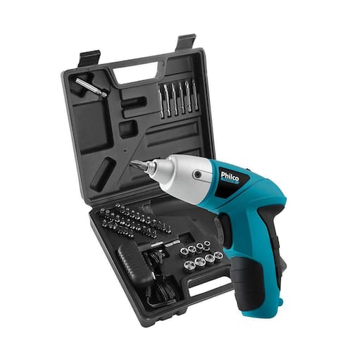 - Marca: Philco - Modelo: PPPF01MF - Tensão: 4,8V - Cor: Azul - Tipo de Produto: Parafusadeira - Alimentação: Bateria Modelo - Bateria: Níquel - Rotação: 200RPM - Torque: 2,3Nm - Reversão de Rotação: Sim - Indicador de Nível de Bateria: Sim - Lanterna de Led: Sim - Acompanha: Maleta e Acessórios (42 Bits) - Dimensões do Produto (LxAxP): 50 x 14 x 13,5 cm - Dimensões da Embalagem (LxAxP): 60 x 21,5 x 20 cm - Peso Líquido: 0,393Kg - Peso Bruto: 1,18Kg - Garantia: 12 Meses