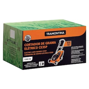 Cortador de Grama Tramontina com Diâmetro de Corte 350MM 1.300W 220V CE35PBuscando um aliado para garantir um jardim encantador? A busca acabou, a Tramontina desenvolveu o cortador de grama elétrico CE35P com 35 cm de diâmetro de corte pensando nas suas necessidades.Este equipamento conta com um design único e inovador que oferece um manuseio muito mais confortável e seguro. Seu chassi é de plástico, trazendo leveza a ferramenta e seu coletor rígido que garante durabilidade, a solução ideal para a realização de manutenções de todos os tipos de gramado, tornando o espaço ainda mais convidativo. Sua leveza ainda garante maior praticidade na hora de armazenar, transportar e operar. Muito mais praticidade no seu serviço.O cortador elétrico CEP35P, oferece alto desempenho com sua potência de 1300W e suas lâminas que estão acima do nível do chassi (evitando que objetos sejam lançados em direção das pessoas) sem perder autonomia e praticidade. Trazendo mais versatilidade, traz três alturas de corte para que possa atender as suas necessidades. Seu cesto coletor possui capacidade de até 18 Litros, trazendo muito mais tempo de trabalho, sem que você precise esvaziar o mesmo.Esse produto deixará seu jardim muito mais aconchegante para que você possa curtir com você e sua família.Recomendações de Uso:- Para qualquer operação de manutenção e controle, o cabo elétrico deve estar desligado da tomada. - Nunca trabalhe com o cortador sob chuva ou em gramados molhados e utilize-o sempre durante o dia ou com boa iluminação. - Inspecione o cabo elétrico periodicamente. Nunca remende o mesmo.- Recomenda-se que as peças de reposição sejam do mesmo modelo e da marca Tramontina.- Antes de ligar o equipamento, verifique se a tensão do cortador está de acordo com a tensão da rede elétrica. - Para a sua segurança e para evitar que o cabo elétrico se desconecte do plug, enquanto o trabalho estiver sendo executado, conecte o cabo elétrico ao fixa-cabo do cortador de grama. - Em gramados muito altos, procure fazer primeiro um pré-corte da grama com a regulagem de corte alto e somente depois o corte na altura definitiva. Isso facilita o trabalho e não sobrecarrega o motor.- Antes de usar o equipamento, leia atentamente o manual de uso e manutenção. - Retire do terreno pedras, tocos e outros objetos. Durante o uso, mantenha crianças e animais à distância do cortador quando ele estiver em operação.- Durante o trabalho, use sempre calçados fechados. - Não permita que pessoas inexperientes usem o cortador sem antes ler o manual de instruções. - Sempre, após um impacto mais forte com algum obstáculo, a lâmina deve ser retirada e examinada cuidadosamente. Se houver necessidade, deve ser trocada por outra nova.- Procure conduzir o cabo elétrico por trás do cortador e sempre pelo lado já cortado da grama. - Evite acúmulo de grama embaixo do cortador.- Após o uso, limpe o cortador usando escova ou um pano umedecido com água. - Nunca despeje água sobre o cortador. - Quando não utilizado, o cortador deve ser armazenado fora do alcance das crianças.- Para descarte dos produtos e embalagens siga as orientações de reciclagem vigentes.?Especificações Técnicas:- Marca: Tramontina- Modelo: CE35P- Voltagem: 220V- Tipo: Cortador de Grama- Cor: Preto e Laranja- Potência: 1300W- Material Chassi: Plástico de alta resistência.- Posição da Lâmina: Acima do nível do chassi, evitando que objetos sejam lançados em direção ao operador e pessoas próximas.- Acabamento das Peças: Metálicas possuem pintura eletrostática a pó, que tem uma melhor apresentação visual e maior proteção contra oxidação.- Interruptor: Duplo Acionamento.- Acabamento do Braço: Metálico, com isolamento.- Alça: Sim, para facilitar o transporte.- Sistema de regulagem da altura de corte: Sim- Três alturas de corte: 23 mm, 38 mm e 53 mm.- Cesto Coletor: Sim, rígido com capacidade de 18 L.- Área de corte indicada: 1.300 m².- Certificação do Produto: Certificado pelo Inmetro conforme OCP-0034, NCC, Segurança, Compulsório.- Diâmetro de corte: 35 cm.- Dimensões do Produto (LxAxP): 40,1 x 108,5 x 119,6 cm.- Dimensões da Embalagem (LxAxP): 43,3 x 37 x 67 cm- Peso Líquido: 14,2950 kg- Peso Bruto: 15,8450 kg- Garantia: 12 meses