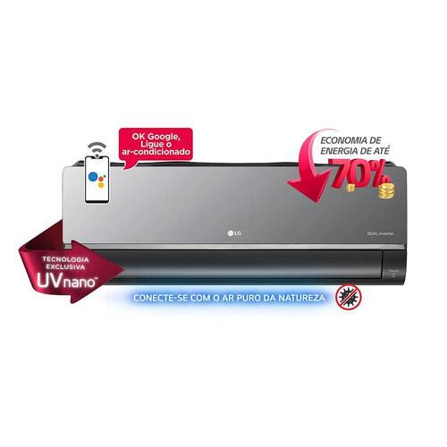 Ar Condicionado Split LG Dual Inverter Voice ARTCOOL UV Nano 24000 Quente/Frio 220V S4-W24K2RXEA sua busca pelo conforto térmico em seus ambientes acabou. A LG pensa em cada detalhe e trás para você e sua família um ar condicionado com muito mais facilidades de diferenciais que trarão muito mais conforto a sua rotina. O novo LG Dual Inverter Voice ARTCOOL UV Nano é a solução perfeita para aqueles que procuram alta tecnologia e conectividade em um único produto. Com Design moderno e sofisticado, esse aparelho conta com cor exclusiva (cinza escuro) e painel com acabamento espelhado que proporcionam um acabamento único e elegante. O Dual Inverter Voice ARTCOOL UV Nano também economiza até 70% de energia, comparado com um modelo convencional não inverter. Seu motor reduz o número de partidas do compressor, trazendo muito mais eficiência a baixo custo. Este mesmo compressor, além de econômico, possui amplo controle de velocidade, podendo atingir a temperatura desejada até 40% mais rápido e a mantendo estável, sem flutuação que ocorre em outros modelos.Sinta o ar puro da natureza com a exclusiva tecnologia UV Nano que deixa o interior de seu ar condicionado sempre limpo através de lâmpadas de LED Ultravioletas. Essas são capazes de eliminar até 99,99% de bactérias, vírus e impurezas no interior do aparelho, garantindo sempre a melhor qualidade de ar em todo o ambiente. ALém disso, conta com função Auto Limpeza que impede a formação de bactérias e mofo no interior do ar condicionado, proporcionando muito mais conforto. Ainda pensando numa maior qualidade de ar, conta com sistema de multi-filtragem em 4 etapas! O pré-filtro é capaz de capturar partículas de poeira que estão no ar, o filtro antialérgico remove substâncias que causam alergias, ácaros e irritações respiratórias. Muito mais segurança e praticidade para você!Pensando na sua qualidade de vida, LG Dual Inverter Voice ARTCOOL UV Nano conta com função Comfort Sleep, que garante o conforto térmico do ambiente durante o período de sono, permitindo o ajuste de até 4 funções automáticas em um só clique. Conta também com um sistema de ventilação de alta precisão que oferece um menor nível de ruído (a partir de 22 decibéis) sendo muito mais silencioso e contribuindo para uma boa noite de sono. O seu LG Dual Inverter Voice ARTCOOL UV Nano traz muito mais praticidade na sua rotina e permite que você possa e conectar a ele de qualquer lugar e hora com seu smartphone. Sua conectividade com o app LG ThinQ traz opções de controle a distância e também permite acionamento pro comandos de voz associados através do OK Google e Alexa. Este equipamento ainda conta com 11 opções de posicionamento de vane, 6 posições pré-definidas verticais e 5 posições horizontais para um melhor ajuste de distribuição de ar.Pensando em uma maior durabilidade, este aparelho conta com serpentina de cobre, com aletas em acabamento Gold FinTM que são muito mais resistentes a corrosão e estendem a vida útil do produto. Já seu compressor Dual Inverter traz muito mais eficiência e estabilidade durante o uso, contando com garantia de 10 anos. Especificações Técnicas:- Marca: LG- Linha: Dual Inverter Voice ARTCOOL UV Nano- Modelo: S4-W24K2RXE- Voltagem: 220V (Não é Bivolt)- Tipo: Split- Ciclo: Quente/Frio- Cor: Cinza Escuro- Capacidade: 24000 Btus- Classificação Energética: A- Potência (refrigeração): 2.080 W- Potência (aquecimento): 1.890 W- Corrente (refrigeração): 9,4 A- Corrente (aquecimento): 8,8 A- Consumo Anual: 650kWh/Ano- CCE: 3,10W/W- Capacidade de refrigeração (Mín/Nominal/Máx): 3.500/ 22.000/ 24.500 BTU/h- Capacidade de aquecimento (Mín/Nominal/Máx): 3.500/ 22.000/ 24.500 BTU/h- Desumidificação: 2,0l/h- Alimentação elétrica: 220V/60Hz/1ph - Gás Refrigerante: R-410A- Conexões Ø(liquido/gás): 1/4" - 5/8"- Comprimento / desnivel max. [m]: 20/10- Controle remoto sem fio: Sim- Conexão remota via Wi-Fi: Sim- Comando de voz com Google Assistente e Alexa: Sim- Modo SLEEP: Até 7 horas- TIMER: Até 24 horas- Função ENERGY SAVING: Sim- JET MODE (resfriamento/aquecimento rápido): Sim- Área do ambiente: de 31 até 40 m²- CST: 4- CEST: 21.093.00- Display Iluminado (Temp/Consumo/Alarmes): Sim- UVnano Lâmpadas Ultravioletas LED: Sim- Filtro Duplo Lavável: Sim- Modo Auto Limpeza: Sim- Serpentina de Cobre com tratamento Gold Fin: Sim- Vazão de ar nominal: 49m3/min- Nivel de ruido Unidade Externa: 58/56dB(A)- Faixa de temp. (Refrigeração) Unidade Externa: 18~48°C- Faixa de temp. (Aquecimento) Unidade Externa: -5~24°C- Abertura da aleta: Vertical/horizontal- Deflexão de Ar Acima e Abaixo: Automático- Deflexão de Ar Direita e Esquerda: Automático- Vazão de ar nominal [m3/min] Refrigeração/aquecimento: 19,0/20,5- Nivel de ruido [dB(A)]: 45/43/38/32- Distância de Instalação da Evaporadora (AxL): 12 x 20 cm- Dimensões da Unidade Interna (LxAxP): 99,8 x 34,5 x 21,2 cm- Dimensões da Unidade Externa (LxAxP): 87 x 65 x 33 cm- Dimensões da Embalagem da Unidade Interna (LxAxP): 108,5 x 42,7 x 28,6 cm- Dimensões da Embalagem da Unidade Externa (LxAxP): 102,6 x 68,3 x 44,6 cm- Peso Líquido da Unidade Interna: 12,8 kg- Peso Líquido da Unidade Externa: 42,4 kg- Peso Bruto da Unidade Intenra: 16,2 kg- Peso Bruto da Unidade Externa: 46,4 kg - Garantia do Compressor: 10 anos- Garantia: 12 meses