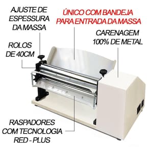 Cilindro Laminador Elétrico Saro Standart Bivolt 400x57mm CSCPara você que gosta de criar e ousar fazendo diversos tipos de massas, apresentamos o Cilindro Laminador Elétrico Saro Standart que permite que você use sua imaginação, preparando desde espaguetes, talharim, pastéis, massas para lasanhas, biscoitos, e ainda massa biscuit e pasta americana. é especializado em laminar, cilindrar e sovar.Você estará livre para criar o que desejar, qualquer tipo de massa, o Cilindro Saro Standart vai te ajudar a deixar no ponto perfeito! Com uma carenagem 100% de metal e seus rolos de 40cm é uma revolução dos cilindros laminadores, proporciona segurança, pois é robusto, fácil de manejar, conta com bandeja para a entrada da massa, atribuindo mais agilidade ao usar. O Cilindro Saro Standart é único em sua categoria com seus rolos de 40 cm, permitindo o preparo de massas de até 40cm de largura. Além de tudo, foi desenvolvido para durar por anos, sempre mantendo seu aspecto de um produto novo! Possui pintura anti-risco e alta tecnologia em seu motor, permitindo assim alta durabilidade e sem necessidade de manutenções. Características:- Sistema de segurança integrado de paralisação total.- 4 rolamentos dentro dos cilindros, tornando a massa mais uniforme.- Lamina 20 metros de massa por minuto, grande produção em menos tempo.- Raspadores para não grudar a massa, mantendo os rolos limpos durante e depois da utilização.- Laterais reforçadas em nlyon (plástico de alta resistência).- Carenagem 100% de ferro (os cilindros da concorrência possuem carenagem de plástico).- Mesa de apoio reclinável conforme sua preferencia. (os cilindros da concorrência possuem mesa de apoio fixa).- Pés emborrachados para evitar que sua mesa risque.- Motor de alta tecnologia com 1/3cv de potência.- Base em mdf laminado próprio para contato com o alimento.Especificações Técnicas:- Marca: Saro- Modelo: CSC- Voltagem: Bivolt- Cor: Branco- Aplicação: Laminar/cilindrar qualquer tipo de massa.- Material: Inox e Aço carbono- Largura dos Cilindros: 40cm (400mm)- Abertura máx. dos cilindros: 10 mm- Abertura min. dos cilindros: 00 mm- Diâmetro dos cilindros: 57 mm- Potência do Motor: 1/3 cv- Itens inclusos: Máquina Cilindro Laminadora com sistema de segurança | Manual de Instruções do Usúario | Termo de Troca e devoluções- Nacionalidade: Nacional- Origem: 0 Grupo: 000- Dimensões do Produto (LxAxP): 25 x 25 x 58 cm- Dimensões da Embalagem (LxAxP): 30 x 30 x 63 cm- Peso líquido: 8,5 kg- Peso Bruto: 9,5 kg- Garantia: 12 meses