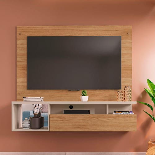 Painel Caemmun Black 19 Buriti/Off White F.00630.303Quer deixar sua sala diferente, mais bonita, com espaços para acomodar sua TV, seus objetos e eletroeletrônicos? O Painel Caemmun Black conta com design compacto e funcional que vai trazer mais modernidade para sua sala ou quarto!Seu tampo é feito em MDP de 25mm. Além de suas prateleiras e nicho abertos, em que você pode ousar em diversos tipos de decoração, ainda possui um nicho com porta basculante com dobradiças metálicas para que você possa manter objetos guardados, mantendo a organização do ambiente. E ainda, um dos seus nichos possui espelho, embelezando e deixando seu painel mais estiloso. Aproveite agora mesmo para dar um toque especial na decoração da sua casa, adquira agora mesmo o Painel Caemmun Black!Especificações Técnicas:- Marca: Caemmun- Modelo: F.00630.303- Cor: Buriti / Off White- Para TV até: 55 Polegadas- Material do tampo: MDP de 25 mm- Nicho 1: Com porta basculante e com dobradiças metálicas- Nicho 2: Aberto com espelho- Material: MDP de 12, 15 e 25 mm - Material dos botões no painel: PVC - Passa fios: Sim- Dimensões do Produto (LxAxP): 136 x 122,5 x 25,5 cm- Dimensões da Embalagem (LxAxP): 141,7 x 10 x 45,7- Peso líquido: 32,98 kg- Peso Bruto: 33,98- Garantia: 3 meses