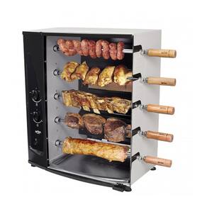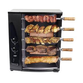 Assador a Gás GLP Rotativo Arke 05 Espetos Bivolt AGR-05O Assador Rotativo a Gás Arke AGR-05 Chegou para facilitar o seu churrasco. Serve muito bem para quem mora em casas e apartamentos sem churrasqueira manual e para quem quer economizar na hora de preparar aquela carne assada.Ele contém 5 espetos simples com sistema giratório que permite assar os alimentos nos dois lados de forma homogênea. São dois queimadores infravermelhos independentes que ajudam a preparar a carne de uma forma mais rápida e, ao mesmo tempo econômica, muito mais autonomia nos preparos de suas receitas. Acompanha bandeja coletora de gordura que auxilia não só em deixar seu alimento mais saudável, mas também facilita na limpeza.Além disso, é ecologicamente correto e não produz toda aquela fumaça, assim você pode assar seu churrasco sem prejudicar o meio ambiente. Sua porta é de vidro transparente para facilitar a visualização do preparo das carnes, o vidro curvo permite que você asse frangos inteiros e melhor circulação do ar, além de facilitar a limpeza da porta e não atrapalhar a visualização. Sua estrutura de metal contém pintura epóxi que além de deixar o produto bonito, garante mais proteção e deixa-o com cara de novo por muito mais tempo e pés antiderrapantes que garantem estabilidade e segurança no uso do produto. Especificações Técnicas:- Marca: Arke- Modelo: AGR-05- Voltagem: Bivolt- Alimentação á Gás: GLP- Tipo: Assador a Gás Rotativo- Cor: Cinza e Preto- Capacidade: 1,5kg de Carne por Espeto- Capacidade Total: 7,5kg- Potência: 30W- Consumo de Energia: 0,03kW/h- Consumo de Gás: 200 g/h (por queimador)- Material: Aço- Acabamento: Pintura Epóxi- Tipo de Vidro: Curvo- Tipo de Queimador: Infravermelho- Número de Queimadores: 2- Número de Pés- Pés Antiderrapantes: Sim- Bandeja Coletora de Gordura: Sim- Quantidade de Espetos: 5 espetos (sendo 4 simples e 1 triplo).- Giro dos Espetos: 6RPM- Acendimento: Manual- Quantidade de queimadores: 2- Dimensões dos Espetos: 45cm de lâmina + 12cm de cabo = 57cm- Dimensões do Produto Internas (LxAxP): 42 x 62 x 32 cm - Dimensões do Produto Externas (LxAxP): 56 x 66 x 37 cm - Dimensões da Embalagem (LxAxP): 61,5 x 74 x 39 cm - Peso Líquido: 21kg- Peso Bruto: 23kg- Garantia: 6 meses