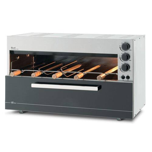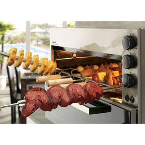 Assador Gás GLP de Embutir Rotativo Fischer Ranch 05 Espetos Bivolt 19257Com design elegante e moderno, esse assador se torna versátil por poder ser instalado em bancada ou embutido. Os amantes do churrasco ficaram muito mais felizes com esse modelo que proporciona comodidade e eficiência em um único produto. Sem fazer fumaça, é indicada para locais com pouco espaço ou sem saídas de ventilação.Sua alta potência traz ainda mais força aos seus 3 queimadores, assando o alimento de maneira muito mais veloz. Com 5 espetos rotativos que proporcionam um assado uniforme é capaz de atender sua famílias e amigos da melhor maneira possível. O interior desse assador conta com acabamento esmaltado em easy clean que garante uma limpeza muito mais fácil. Ele ainda conta com iluminação interna e controlador de gás que permite uma regulagem mais prrecisa da potência dos queimadores infravermelhos. Especificações Técnicas:- Marca: Fischer- Linha: Ranch- Modelo: 19257- Voltagem: Bivolt- Tipo: Assador a Gás GLP de Embutir- Funcionamento: Gás- Potência do Motor: 5x4 W- Potência dos Queimadores: 3 x 2.250 Kcal- Consumo: 570 g/h de GLP- Revestimento Interno: Tecnologia Easy Clean (de fácil limpeza)- Lâmpada: Sim- Bandeja Coletora para Resíduos: Sim- Acendimento Automático: Sim- Espetos Rotativos: Sim-Acessórios da Embalagem: Manual de instruções Grades de ventilação Molduras laterais Espetos simples, duplos e grelha Bandeja coletora de resíduos.- Dimensões do Produto (LxAxP): 95,6 x 61,7 x 63 cm- Dimensões do Nicho (LxAxP): 93 x 56 x 60 cm- Dimensões da Embalagem (LxAxP): 98 x 64,5 x 64 cm- Peso Líquido: 34,52kg- Peso Bruto: 38,32kg- Garantia: 12 meses