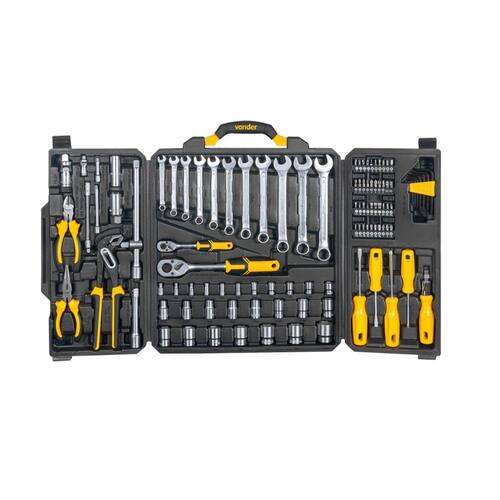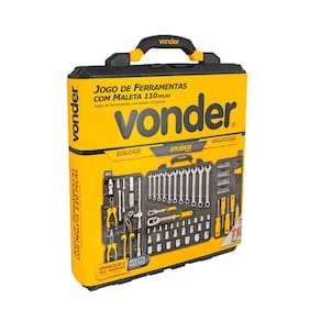 Caixa de Ferramentas Vonder 110 Peças com Maleta 3599110105A Vonder trouxe a caixa de ferramentas perfeita para você! Com 110 peças você poderá fazer manutenções e reparos em geral com todas as ferramentas necessárias. A caixa de ferramentas vai trazer mais praticidade porque com ela será possível realizar vários tipos de trabalhos. E para ficar melhor, a Caixa de ferramentas vem em uma maleta que deixará todas as peças organizadas.Especificações Técnicas:- Marca: Vonder- Modelo: 3599110105- Cor: Preta- Quantidade de peças: 110- Dimensões da Embalagem (AxLxP): 48 x 40 x 9 cm- Peso Liquido: 7,50 kg- Peso Bruto: 7,50 kg- Garantia: 3 mesesItens inclusos:- 1 Maleta plástica- 1 Porta-chaves allen/hexagonais- 4 Porta-bits- 1 Alicate corte diagonal 6" em aço cromo vanádio- 1 Alicate de bico meia-cana 6" em aço cromo vanádio- 1 Alicate bomba d'água 10" em aço cromo vanádio- 2 Chaves de fenda em aço cromo vanádio (5,0mm x 75mm (3/16" x 3") e 6,3mm x 100mm (1/4" x 4"))- 2 Chaves phillips em aço cromo vanádio (5,0mm x 75mm (n° 1 - 3/16" x 3") e 6,3mm x 100mm (n° 2 - 1/4" x 4"))- 8 Chaves allen/hexagonais em aço cromo vanádio (1,5mm - 2mm - 2,5mm - 3mm - 4mm - 5mm - 5,5mm - 6mm)- 11 Chaves combinadas (8mm - 9mm - 10mm - 11mm - 12mm - 13mm - 14mm - 15mm - 17mm - 18mm - 19mm)- 15 Soquetes sextavados encaixe 1/2" em aço cromo vanádio (10mm - 11mm - 12mm - 13mm - 14mm - 15mm - 17mm - 18mm - 19mm - 20mm - 21mm - 22mm - 23mm - 24mm - 27mm)- 1 Catraca encaixe 1/2"- 1 Extensão 5" em aço cromo vanádio encaixe 1/2"- 1 Junta universal em aço cromo vanádio encaixe 1/2"- 1 Cabo T em aço cromo vanádio encaixe 1/2" x 10”- 2 Soquetes para vela de ignição em aço cromo vanádio (16mm e 21mm)- 11 Soquetes sextavados em aço cromo vanádio encaixe 1/4" (4mm-5mm-6mm-7mm-8mm-9mm-10mm-11mm-12mm-13mm-14mm)- 1 Catraca encaixe 1/4"- 1 Extensão em aço cromo vanádio 2" encaixe 1/4"- 1 Extensão em aço cromo vanádio 4" encaixe 1/4"- 1 Extensão flexível 6" em aço cromo vanádio encaixe 1/4"- 1 Junta universal em aço cromo vanádio encaixe 1/4"- 1 Cabo adaptador para bits com catraca em aço cromo vanádio encaixe 1/4", bits magnéticos em aço cromo vanádio encaixe 1/4"- 7 Fenda (3,5mm (2 peças), 4mm (2 peças), 5,5mm, 6,5mm e 8mm)- 8 Phillips (n° 0, n° 1, n° 2 e n° 3 (2 peças cada))- 6 Allen (2mm - 3mm - 4mm - 5mm - 6mm - 7mm)- 3 Quadrados (S1, S2 e S3)- 7 Hexalobular (T10, T15, T20, T25, T27, T30 e T40)- 3 Pozidrive (PZ1, PZ2 e PZ3)- 4 Três pontas (1, 2, 3 e 4) - 2 Adaptadores