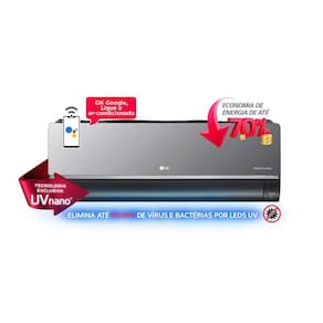 Ar Condicionado Split LG Dual Inverter Voice ARTCOOL UV Nano 18000 Quente/Frio 220V S4-W18KLRXCA sua busca pelo conforto térmico em seus ambientes acabou. A LG pensa em cada detalhe e trás para você e sua família um ar condicionado com muito mais facilidades de diferenciais que trarão muito mais conforto a sua rotina. O novo LG Dual Inverter Voice ARTCOOL UV Nano é a solução perfeita para aqueles que procuram alta tecnologia e conectividade em um único produto.Com Design moderno e sofisticado, esse aparelho conta com cor exclusiva (cinza escuro) e painel com acabamento espelhado que proporcionam um acabamento único e elegante. O Dual Inverter Voice ARTCOOL UV Nano também economiza até 70% de energia, comparado com um modelo convencional não inverter. Seu motor reduz o número de partidas do compressor, trazendo muito mais eficiência a baixo custo. Este mesmo compressor, além de econômico, possui amplo controle de velocidade, podendo atingir a temperatura desejada até 40% mais rápido e a mantendo estável, sem flutuação que ocorre em outros modelos.Sinta o ar puro da natureza com a exclusiva tecnologia UV Nano que deixa o interior de seu ar condicionado sempre limpo através de lâmpadas de LED Ultravioletas. Essas são capazes de eliminar até 99,99% de bactérias, vírus e impurezas no interior do aparelho, garantindo sempre a melhor qualidade de ar em todo o ambiente. ALém disso, conta com função Auto Limpeza que impede a formação de bactérias e mofo no interior do ar condicionado, proporcionando muito mais conforto. Ainda pensando numa maior qualidade de ar, conta com sistema de multi-filtragem em 4 etapas! O pré-filtro é capaz de capturar partículas de poeira que estão no ar, o filtro antialérgico remove substâncias que causam alergias, ácaros e irritações respiratórias. Muito mais segurança e praticidade para você!Pensando na sua qualidade de vida, LG Dual Inverter Voice ARTCOOL UV Nano conta com função Comfort Sleep, que garante o conforto térmico do ambiente durante o período de sono, permitindo o ajuste de até 4 funções automáticas em um só clique. Conta também com um sistema de ventilação de alta precisão que oferece um menor nível de ruído (a partir de 22 decibéis) sendo muito mais silencioso e contribuindo para uma boa noite de sono.O seu LG Dual Inverter Voice ARTCOOL UV Nano traz muito mais praticidade na sua rotina e permite que você possa e conectar a ele de qualquer lugar e hora com seu smartphone. Sua conectividade com o app LG ThinQ traz opções de controle a distância e também permite acionamento pro comandos de voz associados através do OK Google e Alexa. Este equipamento ainda conta com 11 opções de posicionamento de vane, 6 posições pré-definidas verticais e 5 posições horizontais para um melhor ajuste de distribuição de ar.Pensando em uma maior durabilidade, este aparelho conta com serpentina de cobre, com aletas em acabamento Gold FinTM que são muito mais resistentes a corrosão e estendem a vida útil do produto. Já seu compressor Dual Inverter traz muito mais eficiência e estabilidade durante o uso, contando com garantia de 10 anos.Especificações Técnicas:- Marca: LG- Linha: Dual Inverter Voice ARTCOOL UV Nano- Modelo Conjunto: S4-W18KLRXC- Modelo Unidade Interna: S4NW18KLRXC.EB2GAMZ- Modelo Unidade Externa: S4UW18KLRXC.EB2GAMZ- Linha: Voice ARTCOOL UV Nano- Voltagem: 220V - Tipo: Split- Ciclo: Quente/Frio- Cor: Cinza Escuro- Capacidade: 18000 Btus- Capacidade Refrigeração (Min/Nominal/Máx): 3.685/ 19.000/ 20.800 BTU/h- Capacidade Aquecimento (Min/Nominal/Máx): 3.685/ 19.000/ 20.800 BTU/h- Classificação Energética: A- Potência (refrigeração): 1.718 W- Potência (aquecimento): 1.540 W- Corrente (refrigeração): 8,1 A- Corrente (aquecimento): 7,0- Consumo Anual: 742,24kWh/Ano- CCE: 3,24W/W- Desumidificação: 2,6l/h- Alimentação elétrica: 220V/60Hz/1ph- Gás Refrigerante: R-410A- Conexões Ø(liquido/gás): 1/4" - 1/2"- Comprimento / desnivel max. [m]: 20/10- Controle remoto sem fio: Sim- Wi-Fi integrado pronto parauso: Sim- Comando de voz com Google Assistente e Alexa: Sim- Modo SLEEP: Até 7 horas- TIMER: Até 24 horas- Função ENERGY SAVING: Sim- JET MODE (resfriamento/aquecimento rápido): Sim- Área do ambiente: de 21 até 30 m²- CST: 4- CEST: 21.093.00- Display Iluminado (Temp/Consumo/Alarmes): Sim- UVnano Lâmpadas Ultravioletas LED: Sim- Filtro Duplo Lavável: Sim- Modo Auto Limpeza: Sim- Serpentina de Cobre com tratamento Gold Fin: Sim- Vazão de ar nominal: 27m3/min- Nivel de ruido Unidade Externa: 56/55dB(A)- Faixa de temp. (Refrigeração) Unidade Externa: 18~48°C- Faixa de temp. (Aquecimento) Unidade Externa: -5~24°C- Abertura da aleta: Vertical/horizontal- Deflexão de Ar Acima e Abaixo: Automático (6 Posições)- Deflexão de Ar Direita e Esquerda: Automático (5 Posições)- Vazão de ar nominal [m3/min] Refrigeração/aquecimento: 19,0/21,0- Nivel de ruido [dB(A)]: 45/43/38/32- Distância de Instalação da Evaporadora (AxL): 12 x 20 cm- Dimensões do Unidade Interna (AxLxP): 34,5 x 99,8 x 21,2 cm- Dimensões do Unidade Externa (AxLxP): 54,5 x 77 x 28,8 cm- Dimensões da Embalagem da Unidade Interna(AxLxP): 42,7 x 108,5 x 28,6 cm- Dimensões da Embalagem da Unidade Externa(AxLxP): 57,3 x 90,5 x 37,8 cm- Peso Líquido da Unidade Interna: 12,6kg- Peso Líquido da Unidade Externa: 34kg- Peso Bruto da Unidade Interna: 16kg- Peso Bruto da Unidade Externa: 36,5kg- Garantia do Compressor: 10 anos- Garantia: 12 meses