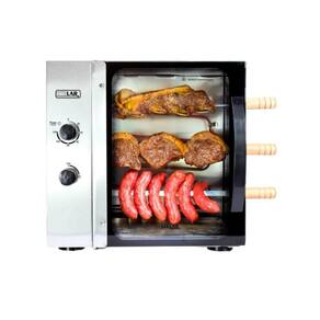 Ela conta com 3 espetos giratórios com três tipos de escolha na hora de girar os espetos, e mais um timer de 120 minutos. Nas versões 127V ou 220 Volts, possui uma bandeja coletora de resíduos, facilitando sua limpeza;