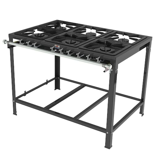 Fogão Industrial a Gás Progas 6 Queimadores Aço Carbono com Pintura Epoxi Preto PMSD-63Juntando alta resistência e alta perfroamance, a Progas trás a sua linha de fogões industriais.Um equipamento robusto e resistente com esse fogão você terá alta potência e performance onde você precisar. Essa linha também conta com bandeja coletora de resíduos e registros industriais com estágios contínuos.São seis queimadores com potência de 600g/h e 300g/h sendo três regulares e três duplos que oferecem muito mais opções nos seus preparos. Os trempes são feitos de ferro fundido trazendo muito mais estabilidade a suas panelas. Pensando na sua durabilidade e praticidade o fogão é feito em aço carbono com pintura epoxi além de ter grelhas (removíveis) e queimadores de ferro fundido que além de trazerem maior longividade ao produto também facilitam na limpeza.Especificações Técnicas:- Marca: Progas- Modelo: PMSD-63- Tipo: Fogão Industrial a Gás - Cor: Preto- Número de Queimadores: 6- Material: Aço Carbono- Acabamento: Pintura Epoxi- Grelhas Removíveis: Sim- Material Grelha: Fero Fundido- Material Sapatas: Plásticas- Material dos Queimadores: Ferro Fundido- Tipo Queimadores: 3 queimador dulpo 600 g/h e 3 queimador simples de 300 g/h- Bandeja Coletora de Gordura: Sim- Dimensões das Grelhas: 33 x 33 cm- Dimensões Perfil: 5 cm- Dimensões do Produto (LxAxP): 108,5 x 82,5 x 82 cm- Dimensões da Embalagem (LxAxP): 112,7 x 86,7 x 19,7 cm- Peso Líquido: 43,9kg- Peso Bruto: 46,3kg- Garantia: 6 meses