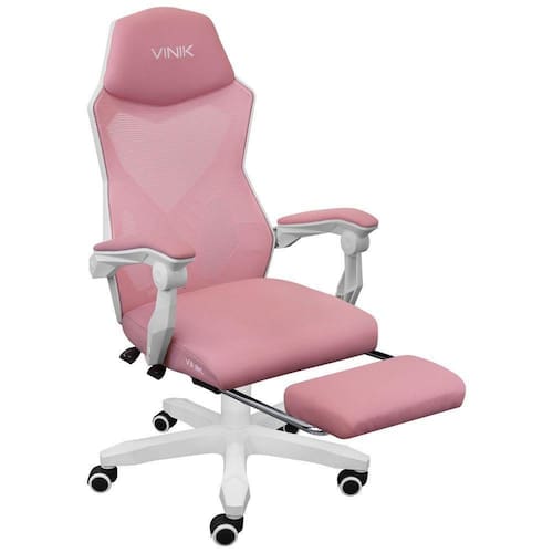 CADEIRA GAMER ROCKET BRANCA COM ROSA - CGR10BRSCARACTERÍSTICAS:Material da estrutura: PolipropilenoMaterial do encosto: Polipropileno e telaMaterial do assento: compensado de madeira, espuma e tecidoDensidade da espuma: D24Material do braço: Estrutura de polipropilenoMaterial da base: NylonMaterial das rodas: PoliuretanoESPECIFICAÇÕES TÉCNICAS:Funções: Ajuste de altura e tilt/sleepInclinação máxima: 135 grausPeso máximo suportado: 150 KgTamanho total: 62x62x114.5 - 124.5cm Tamanho do encosto: 46.5x73cmTamanho do assento: 49x49cm Diâmetro da base: 610mmPeso Bruto:Peso Líquido:Garantia: 1 ano.