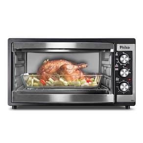 Forno Elétrico Philco PFE48IP Preto 46L 220V O Forno Elétrico Philco PFE48IP Preto tem capacidade de 46 litros e é ideal para quem busca praticidade e facilidade na hora de cozinhar.Conta com um indicador luminoso que informa quando o forno está em funcionamento. Com ele, é possível preparar diversas receitas como bolos, pães, assados e gratinados.O Forno possui um controle de temperatura que vai de 90°C a 230°C, permitindo um ajuste preciso para cada receita. Além disso, o forno possui um timer de até 60 minutos, que pode ser programado para desligar automaticamente após o tempo de cozimento desejado e conta com uma luz interna que permite visualizar o alimento durante o processo de cozimento.Os botões de controle do forno estão localizados na parte frontal do aparelho e são de fácil manuseio. O forno conta com um botão seletor de funções, que permite escolher entre as 5 funções pré-programadas: assar, grelhar, tostar, gratinar e aquecer. O tamanho do forno é suficiente para preparar receitas para uma família pequena ou para quem cozinha eventualmente.Especificações Técnicas:Marca: PhilcoModelo: 56102119Voltagem: 220VTipo: BancadaCor: PretoCapacidade: 46 LitrosPotência: 1500WConsumo: 1,5 (kwh)Porta: vidro temperadoSeletor de temperatura: até 230°CFunção manter ligado: SimTimer: 60 minutos (com desligamento automático e sinal sonoro)Seletor das resistências: inferior, superior (função dourar) ou ambasGrelha: removível em inox com possibilidade de ajustar em 3 níveis de alturaMaterial / Composição: Metal, plástico e vidroTamanho do cordão: 90cmPinos (2 ou 3): 3 pinosDimensões do Produto (AxLxP): 31,6 x 55,5 x 44 cmDimensões da Embalagem (AxLxP): 39 x 61 x 50 cmPeso Líquido: 6,86kgPeso Bruto: 8,54kgGarantia: 12 meses