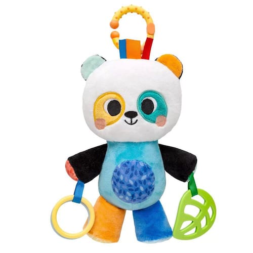 Material - Tecido: 100% Poliester; Chocalho: 100% Poliestireno (PS);Buzina: 100% Acetato-Vinilo de Etileno (EVA); Cabide: 75%Polipropileno (PP)+25% Acetato-Vinilo de Etileno (EVA); Mordedor: 100% Acetato-Vinilo de Etileno (EVA); Anel: 100%Acrilonitrila Butadieno Estireno (ABS).