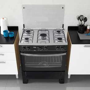 Fogão Itatiaia Waves 5 Bocas All Black Bivolt 3700000043Simples e eficiente, o linha Waves de Fogões da Itatiaia é tudo que a sua cozinha precisa. Seus Queimadores são de alumínio, garantindo mais estilo e durabilidade, e seu forno autolimpante conta com 88 litros de capacidade, do tamanho certo para suas receitas.Selo ConpetO Selo Conpet, tem por objetivo orientar o consumidor no ato da compra, indicando os produtos que apresentam os melhores níveis de eficiência em consumo de gás (combustível não renovável). Este produto está classificado com "Selo A", com maior eficiência de consumo de gás, garantindo mais economia e menos danos ao meio-ambiente.CaracterísticasAlém de contar com uma mesa com queimadores de alumínio, o Fogão Waves, da Itatiaia ainda conta com forno de 88 litros para preparar as mais diversas receitas. Seus pés altos facilitam a limpeza do piso, evitando o acúmulo de sujeiras e gorduras.Especificações Técnicas: - Marca: Itatiaia- Modelo: Waves- Referência: 3700000043- Tensão: Bivolt- Tipo: Gás- Cor: Preto- Número de Bocas: 5- Potência: 0,6 W- Potência Mesa: 10,5 kW- Consumo: Não Informado pelo Fabricante- Classificação Energética: A- Material: Não informado pelo Fabricante- Capacidade do forno: 88,5 l- Função Estufa: Não- Forno com grill: Não- Acendimento automático: Sim- Luz no Forno: Sim- 1 Prateleira no Forno- Dimensões do produto (LxAxP): 79 x 83 x 62,5 cm- Peso: 29,2 kg- Garantia: 12 meses