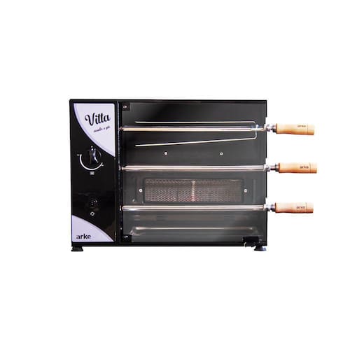 Assador Gás GLP Rotativo Arke Vitta 03 Espetos 127V Bancada - 5290Apresentamos o Assador Gás GLP Rotativo Arke Vitta 03 Espetos Bancada, um produto que alia eficiência e praticidade para o seu churrasco perfeito.A robustez e durabilidade são garantidas pela pintura epóxi, proporcionando a melhor proteção e um acabamento impecável. Além disso, a facilidade de limpeza é um diferencial, mantendo o produto com aspecto novo por muito mais tempo.O vidro reto no interior facilita a limpeza e, juntamente com o sistema de rotação de espetos, garante uma distribuição uniforme da temperatura, resultando em um assado perfeitamente delicioso. Os espetos giratórios possibilitam o cozimento uniforme de diversos tipos de carne, proporcionando um sabor incomparável ao seu churrasco.Tem como destaque sua economia, você pode fazer mais de 50 churrascos com 1 botijao de 13kg, pois ela utiliza apenas 200 gramas por hora em seu consumo de gás, e também possui queimadores infra vermelho que proporciona temperaturas ideais para seu churrasco.A porta de vidro transparente oferece uma visão clara e direta do processo de preparo do alimento, enquanto os pés antiderrapantes garantem estabilidade e segurança durante o uso. Além disso, é um produto ecologicamente correto, não produzindo fumaça, o que contribui para um churrasco mais sustentável e amigável ao meio ambiente.Especificações técnicas:- Modelo: Arke Vitta 03 - 5290 - Cor: Preto - Tensão: 127V - Consumo de Gás: 190g/h - Acendimento: Manual - Lampada interna: Não - Material: Aço Carbono - Acabamento: Epóxi - Capacidade por espeto: 1,5Kg - Capacidade total: 4,5Kg - Acompanha: 3 espetos: 2 simples e 1 triplo, bandeja coletora, pés de borracha e manual de instruções. - Dimensões do produto: 42,5 x 55 x 29 cm (AxLxP) - Dimensões da embalagem: 51,5 x 61,5 x 39 cm (AxLxP) - Peso liq: 15 Kg - Peso bruto: 17 Kg - Garantia: 6 MESES Ean: 7898338264330