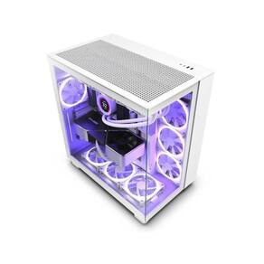 Gabinete Gamer NZXT H9 Flow Mid Tower, superior com furos, lateral e frontal de vidro temperado, sem fonte, com 4 coolers de fluxo de ar de 120 mm