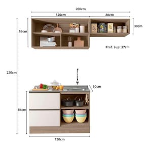 cozinha compacta edna 4 pt 3 gv carvalho oak e off white - Marrom