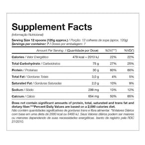 Ingredientes: Sabor baunilha: proteína concentrada do soro do leite, maltodextrina, saborizante e edulcorante sucralose.