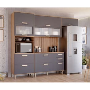 Cozinha Compacta 100%Mdf 5 Pçs 2 Aéreos 1 Balcão 1 Torre C/ Painel Ripado 120Cm Bella Mgm Freijó/Titanium