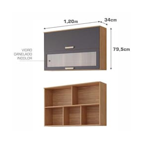 ARMÁRIO AÉREO DE COZINHA 100%MDF 120CM 2 PORTAS BASCULANTES 1 EM VIDRO BELLA MGM MÓVEIS FREIJÓ/TITANIUM