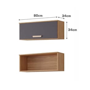 ARMÁRIO AÉREO DE COZINHA 100%MDF 80CM GELADEIRA 1 PORTA BASCULANTE BELLA MGM MÓVEIS FREIJÓ/TITANIUM