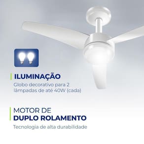 Ventilador Mondial Vte-01 Branco Teto 3 Pas 3 Velocidades 127vApresentamos o Ventilador de Teto Maxi Air VTE-01 da Mondial, ideal para proporcionar um ambiente fresco e arejado. Com hélice integrada de design aerodinâmico, garante maior fluxo de ar, otimizando o espaço. Sua instalação é fácil com o mecanismo pré-montado de encaixe, gire e trave.O sistema de ventilação equilibra potência e baixo ruído, proporcionando uma noite de sono tranquila. Com 3 opções de velocidade (Máxima Turbo, Média Conforto e Mínima Silencioso), você controla o ambiente. A iluminação é garantida pelo globo decorativo para 2 lâmpadas de até 40W cada (não inclusas).O motor de duplo rolamento é durável, e o tubo robusto oferece estabilidade. Escolha o Maxi Air VTE-01 para eficiência, facilidade e conforto, transformando seu espaço com a qualidade Mondial.Especificações técnicas:- Voltagem: 127v- Número de velocidades: 3- Cor: Branco- Itens inclusos: 01 Ventilador e Manual de instruções- Funções: Exaustão, Ventilação e Iluminação.- Controle velocidades: De parede- Controle remoto: Não possui- Potência: 125W- Tipo de ventilador: Teto- Inclinação regulável: Não- Peso: 4,800kg- Dimensões do produto: 42cm x 103cm x 103cm (AxLxP) Ean: 7898216298877