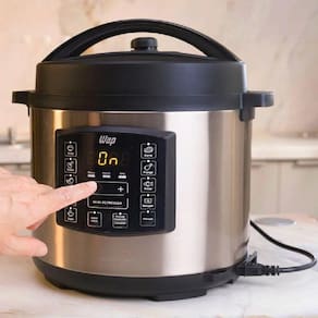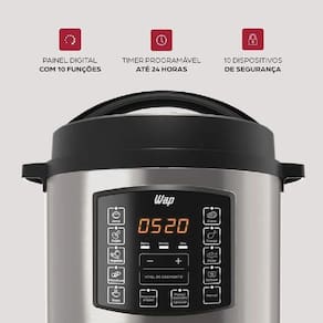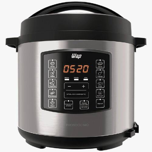 Panela Elétrica de Pressão Wap Preto e Inox 6L 220V WPPE1 FW009528Apresentamos a Panela Elétrica de Pressão Wap, uma adição indispensável para sua cozinha que irá revolucionar a maneira como você prepara suas refeições. Com um design elegante em preto e inox, esta panela de pressão de 6 litros é uma combinação perfeita de estilo e funcionalidade. Com um timer pré-programado de até 24 horas de antecedência, você pode planejar suas refeições com facilidade, garantindo que estejam prontas no momento certo. O display integrado oferece uma interface intuitiva para controlar e monitorar o processo de cozimento.Os pés antiderrapantes garantem estabilidade e segurança durante o uso, enquanto o recipiente interno antiaderente facilita a limpeza após o preparo das refeições. Esta panela elétrica de pressão oferece uma variedade de funções para cozinhar uma ampla gama de pratos, desde sopas reconfortantes até guisados suculentos. Com avisos sonoros e desligamento automático, você pode confiar na Wap para garantir resultados perfeitos a cada vez, enquanto desfruta de total tranquilidade.Especificações técnicas:Marca: WapModelo: WPPE1Voltagem: 220VCor: Inox e pretoPressão de trabalho: 70 kPaPotência: 1000WFrequência: 60 HzCapacidade: 6 LComprimento do cabo elétrico: 1 mTimer: Pré programado, até 24 horas de antecedênciaDisplay: SimPés: AntiderrapanteMaterial do recipiente interno: AndiaderenteFunções: CozinharAviso sonoro: SimDesligamento automático: SimMaterial: Polímeros e MetaisDimensões da caixa: 33 L x 38 A x 33 cmDimensões do produto: 31 L x 32 A x 33 P cmPeso bruto: 5,79 kgPeso líquido: 4,9 kgGarantia: 12 meses