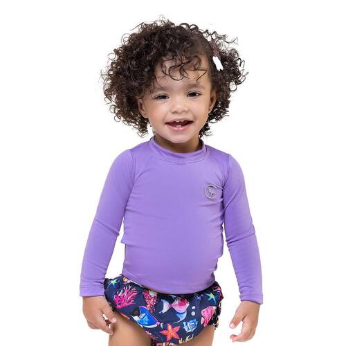 A camiseta bebê violeta costão possui proteção UV 50+, e é perfeita para a os momentos na praia ou piscina das crianças.