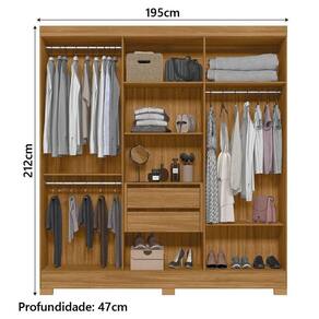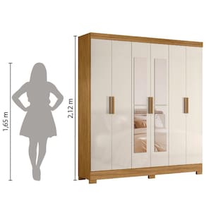 MEDIDAS:: [ A ] = 212 cm [ L ] = 195 cm [ P ] = 47 cm | MARCA:: Moval | COR:: Freijó / Off White | ACABAMENTO:: Pintura UV | MATERIAL DA ESTRUTURA:: MDP | POSSUI ESPELHO:: Sim | PORTAS:: 6 | TIPO DE PORTA:: Bater | DOBRADIÇAS:: Metálicas | GAVETAS:: 2 | CORREDIÇAS:: Metálicas | GAVETAS SUPORTAM ATÉ:: 6kg | MATERIAL DO PUXADORES:: MDF | PRATELEIRAS:: 2 | MATERIAL DOS CABIDEIROS:: Alumínio | CABIDEIROS SUPORTAM ATÉ:: 6kg | PÉS:: 6 | MATERIAL DOS PÉS:: PVC | PESO:: 117,77kg | GARANTIA:: 6 Meses | AVISO:: A Esplanada Móveis se responsabiliza pela entrega dos produtos adquiridos até a porta de entrada ou portaria do endereço indicado, se a portaria do condomínio permitir, as entregas são efetuadas no piso térreo | MODELO: VALENCA 037032 | ALTURA: 212 cm Cor: Freijo Off White