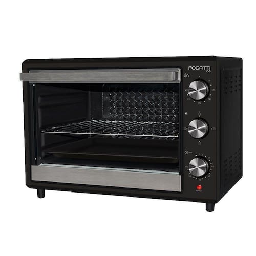 Forno Elétrico Fogatti Preto 50L 127V 10058123Apresentamos o nosso novo forno elétrico de alta performance, projetado para elevar sua experiência na cozinha a um novo patamar. Com uma corrente robusta de 15A e operando a uma frequência de 60Hz, este forno é capaz de proporcionar resultados excepcionais em suas receitas.Com um termostato ajustável que atinge temperaturas de até 250°C, você pode cozinhar uma variedade de pratos com precisão e consistência. O ajuste da grade em três alturas diferentes oferece versatilidade para acomodar uma variedade de tamanhos de alimentos e garantir um cozimento uniforme.Este forno não apenas grelha e doura seus alimentos com perfeição, mas também oferece uma gama de funções adicionais para facilitar sua vida na cozinha. Com recursos como timer, termostato, luz piloto e acabamento interno revestido com material antiaderente, a limpeza é rápida e descomplicada.Além disso, projetamos este forno com sua segurança e comodidade em mente. Os pés anti-derrapantes garantem estabilidade durante o uso, enquanto a grade e a bandeja coletora de resíduos incluídas facilitam o preparo e a limpeza.Especificações Técnicas:Marca: FogattiModelo: i50Voltagem: 127VCapacidade: 50LPotência: 1800WConsumo: 1,2kWhCorrente: 15AFrequência: 60HzTemperatura do Termostato: Até 250CAjuste da Grade: 3 alturasFunções: Grill, Dourador , Timer, Termostato, Luz Piloto, Acabamento interno com revestimento antiaderente, Pés Anti-derrapantes, Acompanha grade, Acompanha bandeja coletora de resíduos Dimensões do Produto: 52 L x 37,8 A x 43,7 P cmDimensões Internas do Produto: 40,0 L x 32,0 A x 37,3 P cmDimensões do Produto Embalado: 57,0 L x 43,5 A x 47,5 P cmPeso do Produto: 8,36 KgPeso do Produto Embalado: 9,92 Kg