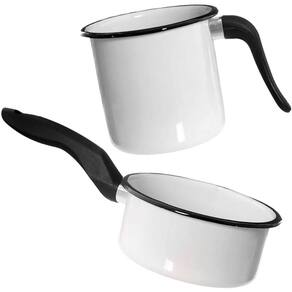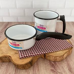 Conjunto Panela Esmaltada Ágata 1L e Leiteira 1,5L com cabos em Nylon Esmaltados Silva Branco.