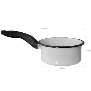 Garantia: 90 Dias / Peso: 710g / Cor predominante: branco / Referência: 2290BRANCO Dimensões da panela: 31cm (C) x 16cm (D) x 7cm (A); Capacidade: 1 litro; Dimensões da leiteira: 18cm (C) x 13cm (D) x 12,5cm (A); Capacidade: 1,5 litros; Materiais: aço carbono com pintura em esmalte vítreo e nylon; Compatível com fogões: a gás, elétrico, vitro cerâmico, indução e a lenha.